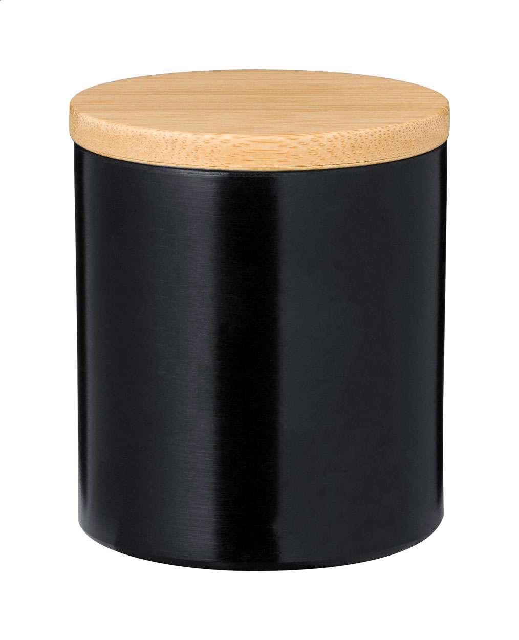 Lumânare cu parfum de vanilie, în suport din aluminiu, cu capac din bambus.