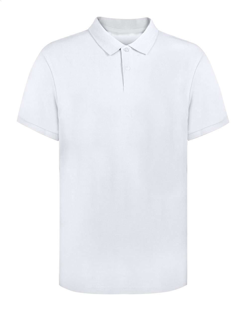 Tricou polo piqué , alb, cu doi nasturi de culoare asortați. 100% bumbac ringspun, 220 g/m².