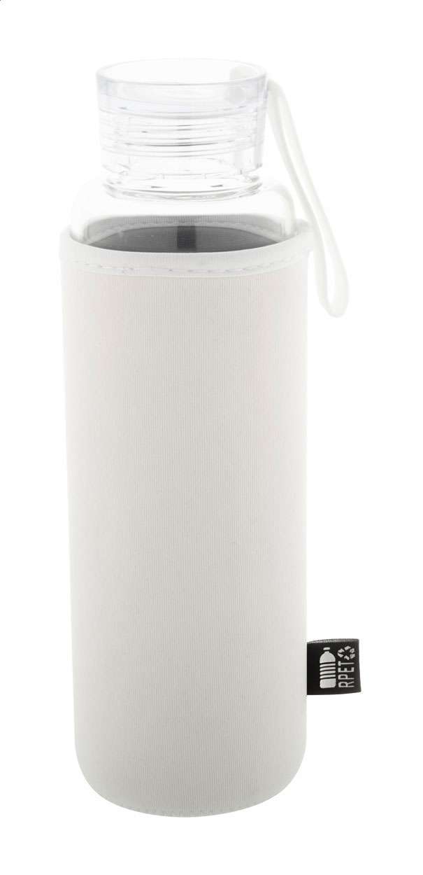 Sticlă din sticlă reciclată cu capac din plastic PS, curea de transport din silicon și capac din neopren RPET, 550 ml. Nu este potrivit pentru băuturi carbogazoase.