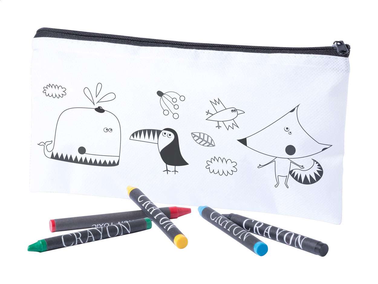Penar de colorat cu fermoar, din material nețesut, cu 5 creioane colorate cerate.