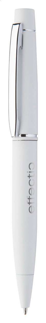 Pix metalic cu deschidere prin răsucire, cu finisaj cauciucat și mină albastră.