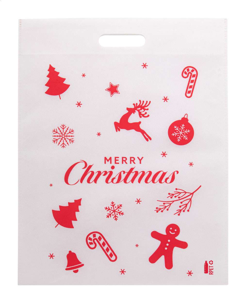 Sacoșă de cumpărături RPET, nețesută, cu design de Crăciun și mânere tăiate, 80 g/m².