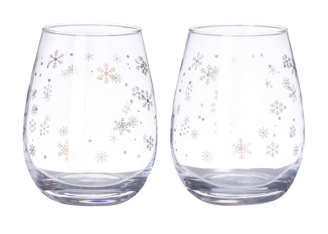 Set pahare, 2 buc, cu model fulgi de nea, 500 ml. În cutie de hârtie neagră.